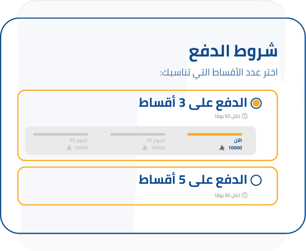 اختَر جدول الأقساط اللي يناسب سيولة منشأتك المالية.